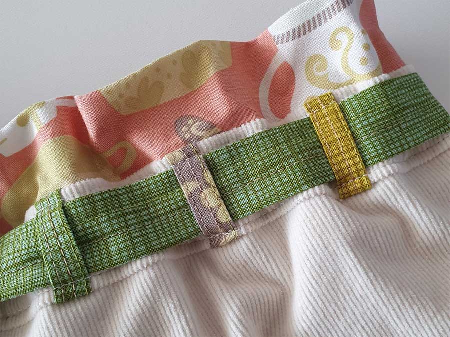 To apply the loops to a finished garment, press under ¼” at each end. Position the loops spanning the waistband area of the garment in the desired location, leaving a bit of ease under the loop to accommodate the belt thickness. Sew across each loop end, backstitching for security. If desired, set the machine for a bartack to secure the ends in place mimicking the look of jeans detailing.