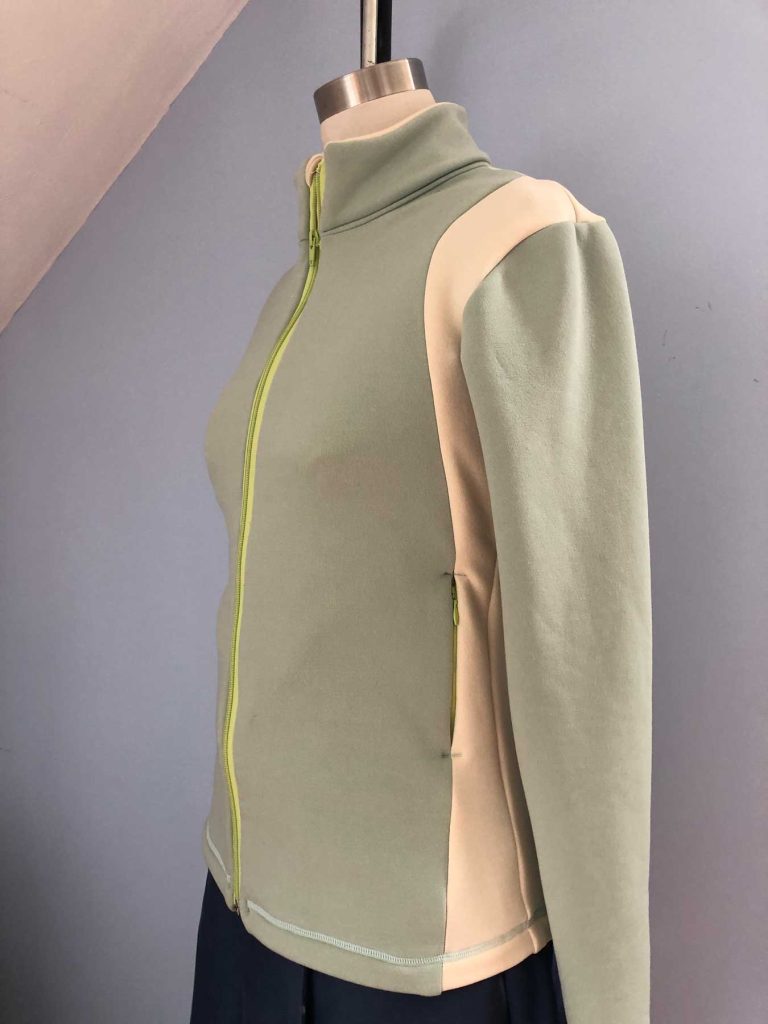 Jackets and pullovers, on the other hand, often benefit from a combination of different stitches. Overlocked and straight-stitched seams give added structure and insulation but make for a larger seam allowance. Cover stitching —while an added step—can further flatten seams and prevent them from rubbing against the body and add decorative detail, especially along princess seams—one of my favorite design features in activewear.