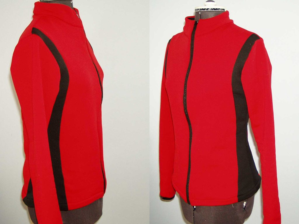 Another design option on sleeves and the bottom of the jacket hem is to use your overlock machine to make what looks like a binding/cuff type look. First, be sure to add length to the pattern to accommodate the option. Then turn the hem under the desired amount towards the wrong side, and turn the entire hem back over to the right side. At this stage, you be overlocking three layers; overlock the edge of the fold and the raw edge of the hem. When it’s turned to the right side, it will look like a cuff type application, but will have been hemmed by the serger. This method can be used for a quick hem on spandex bike shorts hems but will also work on a fleece garment sleeve and bottom edge hems as well. Press or tack the serged hem allowance to make it as flat as possible. If tacking, only do it at specific places like side seam junctions and center front, but not limited to.