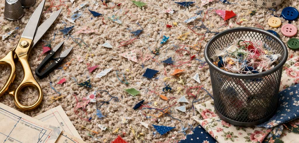 But then there’s the other camp—the “I’ll clean it up later” sewists. These are the makers who get deeply immersed in the creative process, where momentum matters more than maintenance. When inspiration strikes, the last thing they want to do is pause mid-flow to aim thread clippings into a bin. Instead, they snip and keep going, letting the floor (or table, or lap) collect the evidence of their progress.